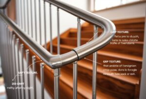 Die Sicherheit Ihrer Handläufe geht über die Einhaltung von Normen hinaus. Achten Sie darauf, dass der Handlauf aus rutschfestem Material gefertigt ist, um Unfälle durch Ausrutschen zu vermeiden. Das Design sollte die Handhabung erleichtern und keine scharfen Kanten oder Unebenheiten aufweisen, die zu Verletzungen führen könnten. Zudem sollte der Handlauf in einem durchgängigen Stück ohne Unterbrechungen verlaufen, um Stabilität zu gewährleisten.